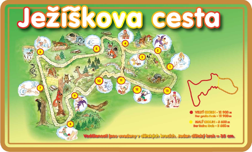 Ježíškova cesta na Božím Daru je oblíbená tematická stezka určená především rodinám s dětmi. Trasa má dvě varianty – kratší okruh dlouhý 5,6 km a delší 12,9 km. Po cestě na vás čekají interaktivní zastávky s úkoly, pohádková atmosféra a příběhy z Ježíškova světa. Ideální výlet pro každého, kdo chce strávit den v přírodě plný zábavy a fantazie!
