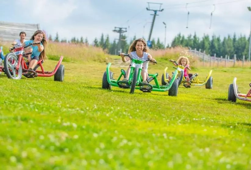 Léto: V létě se areál mění v centrum zábavy a relaxace. Čekají vás půjčovny kol, terénní koloběžky a možnost prozkoumat cyklostezky či turistické trasy Krušných hor. Pro děti je k dispozici hřiště a další atrakce, nechybí ani letní varianta snowtubingu, která zajistí zábavu pro celou rodinu.